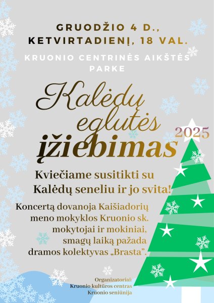 Kviečiame visus į Kruonio m. Kalėdų eglutės įžiebimo šventę!